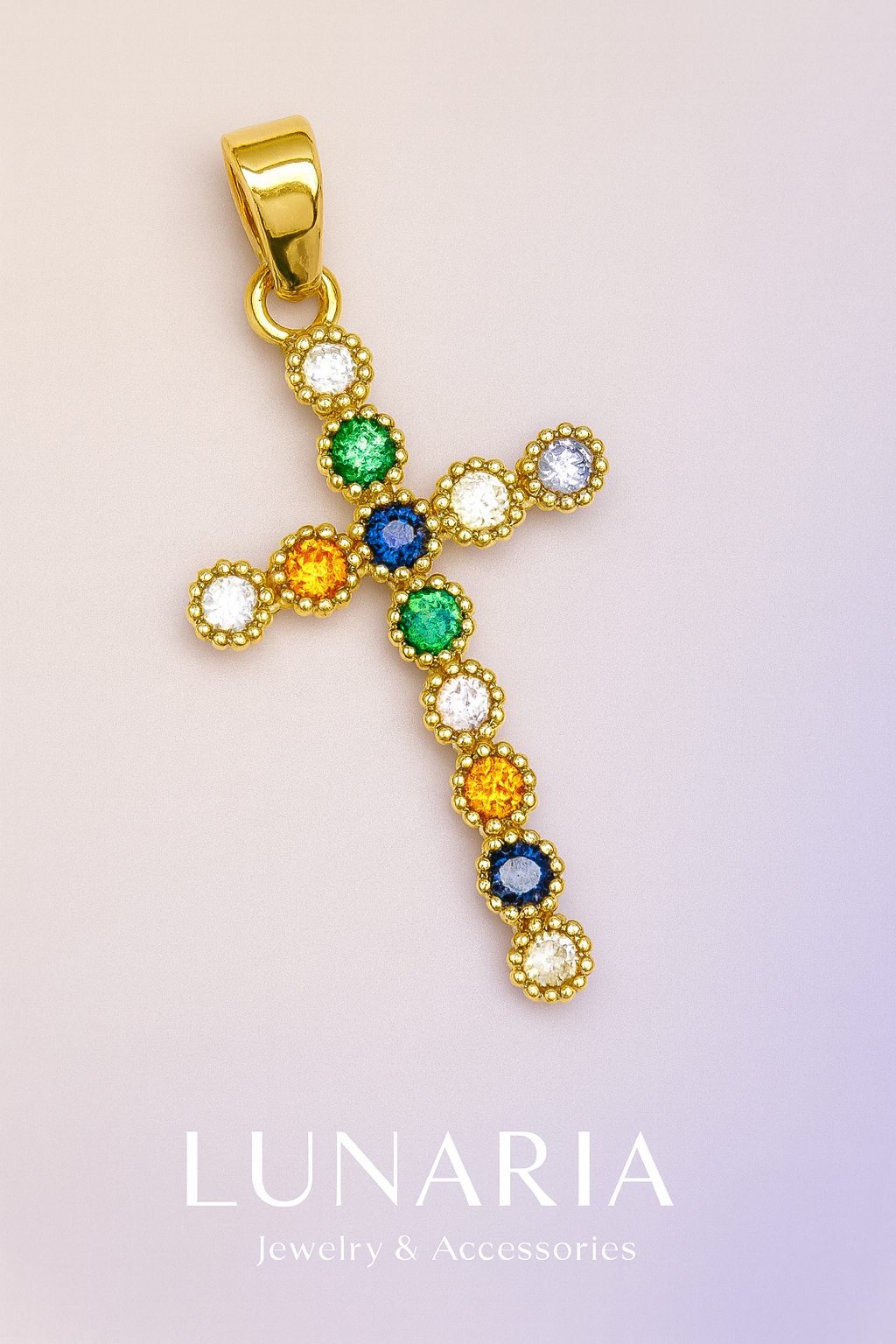 Descubre el equilibrio perfecto entre resistencia y elegancia con nuestro Dije de Cruz Colorida en rodio revestido en oro de 18K. El rodio protege la superficie y mantiene el brillo intacto con el paso del tiempo, mientras que el oro de 18K aporta una tonalidad cálida y sofisticada. Su diseño combina calidad y durabilidad en una pieza versátil que conserva su acabado impecable incluso con uso frecuente con el cuidado adecuado. Una joya pensada para acompañarte con estilo y confianza día tras día.